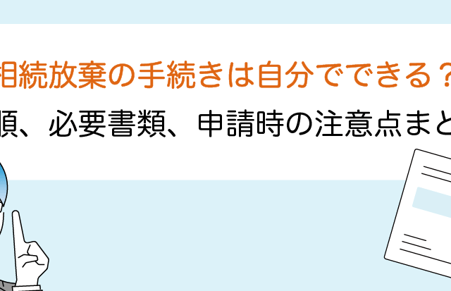 相続放棄の手続きは自分でできる?手順、必要書類、申請時の注意点まとめ 最終更新日:2025/10/15 相続放棄の手続きは自分でも対処可能です。 ただし、手続きの期間は相続発生後3か月と短く、放棄しても相続税申告が必要になる場合もあるなど、いくつか注意点が…