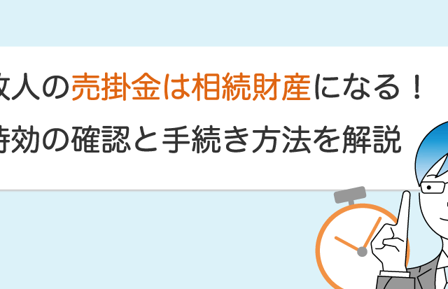 故人の売掛金は未回収でも相続財産に!時効の確認と手続き方法を解説 最終更新日:2025/12/17 「亡き夫が個人事業主。事業でまだ受け取っていない報酬があるようだけど、相続の扱いはどうなる?」 被相続人が個人事業主だと、このように相続発生時点で未払い…