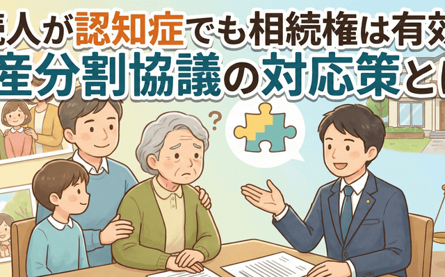 相続人が認知症でも相続権は有効に!遺産分割協議の対応策とは? 最終更新日:2026/02/04 相続人の中に1人でも認知症の人がいると、遺産分割協議が成立しないことがあるのをご存じでしょうか?本記事では、遺産分割協議ができない時の対応策である「法定相続」…