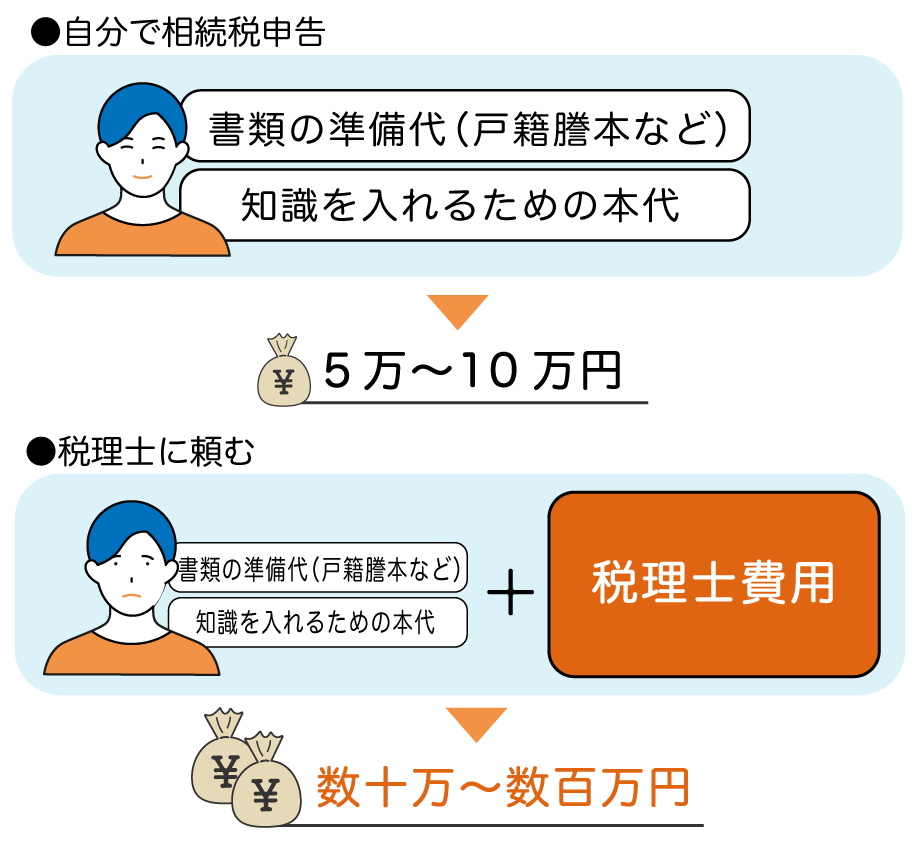 自分で相続税申告を行うと、最低でも数十万円、場合によっては数百万円におよぶ税理士報酬を丸ごと節約できます。