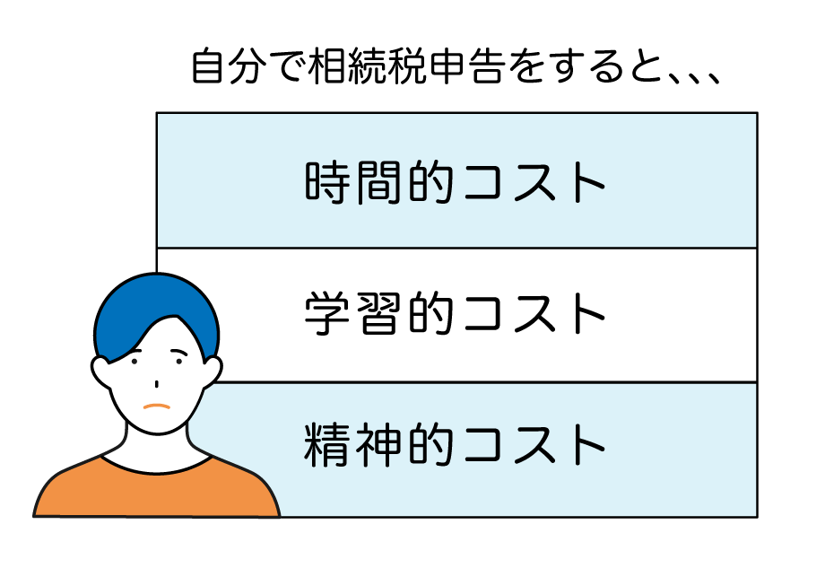 一方で、自分で相続税申告をすると下記の負担コストが発生します。
