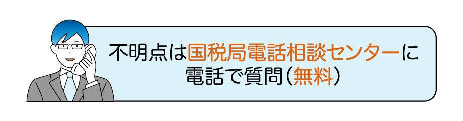 ちょっとした不明点は国税局電話相談センターに、具体的な質問は税務署に電話すれば、無料で教えてもらえます。税務署では事前予約をすれば来署相談もできるため、作成した申告書を持参して見てもらうことも可能です。