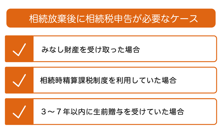 相続放棄した場合でも、下記のようなケースでは相続税申告が必要になることがあります。