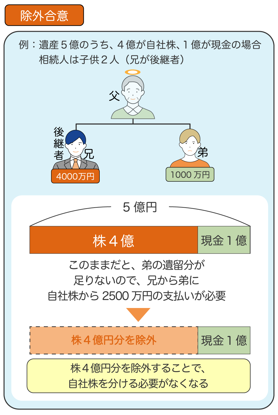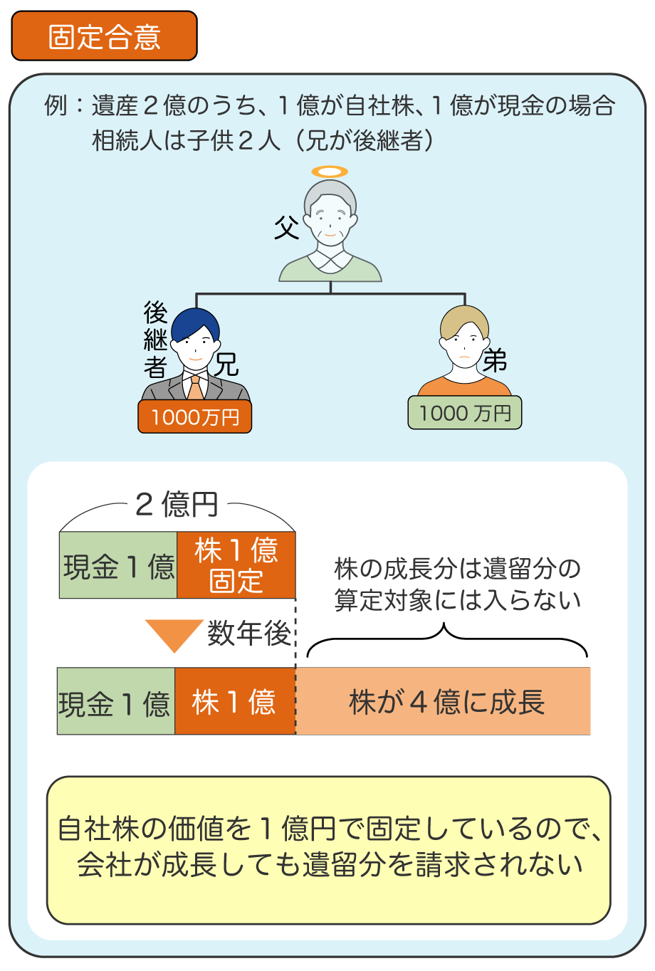 このようなリスクを回避して自社株を後継者に集中させる方法が「除外合意」「固定合意」です。