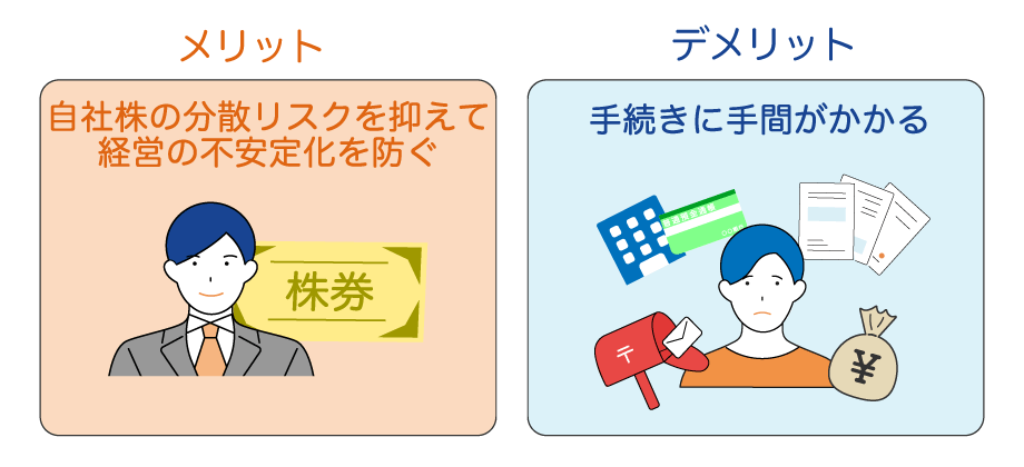 メリットは自社株の分散リスクを抑えて経営の不安定化を防ぐ点にあります。