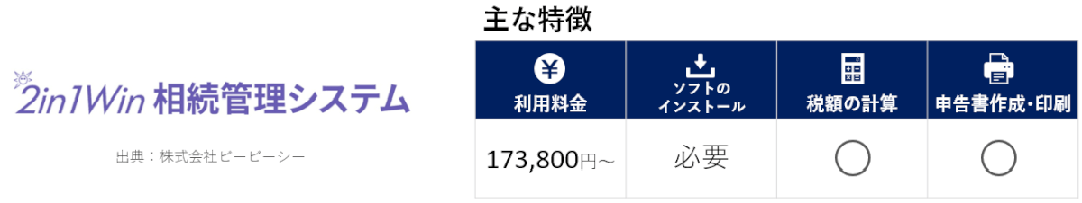 株式会社ビービーシーが運営している、遺産分割シミュレーションから申告書の作成までできる、税理士・司法書士など専門家向けのソフトです。e-Taxにも対応しており、全国約9,000社以上で利用されています。