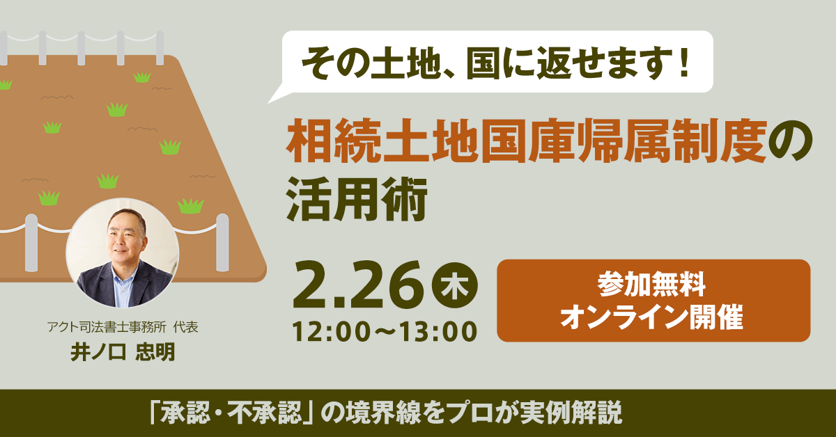 本セミナーでは、制度のポイントはもちろん、申請が承認される土地とそうでない土地の具体的な違いを、元法務局職員の司法書士がわかりやすく解説します。
